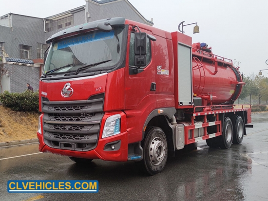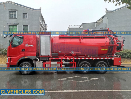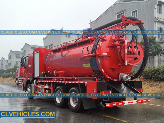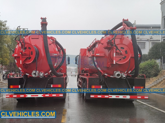 Xe tải kết hợp một bồn chứa nước thải bằng thép cacbon dung tích 10.000 lít với một máy bơm chân không SK-42 và một bồn chứa nước 4.000 lít được trang bị một máy bơm áp suất cao 330L/phút để phun và hút hiệu quả.